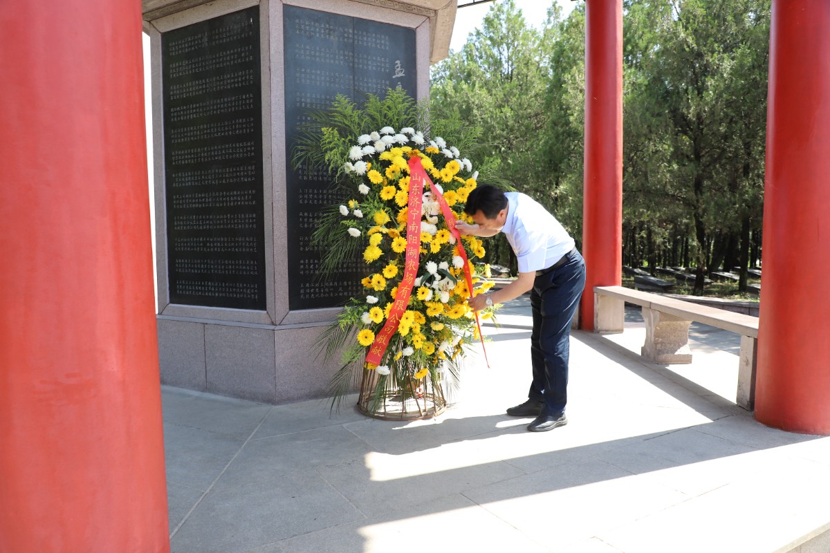 6月4日、6日上午,公司黨員干部從孟良崮戰(zhàn)役的偉大指揮者陳毅元帥、粟裕將軍侍馬而立的塑雕兩側(cè)進(jìn)入紀(jì)念館園區(qū),大家懷著崇敬的心情來到了烈士陵園,那密密麻麻的墓碑無聲的訴說著先烈們?yōu)榱诵轮袊恼Q生所做出的偉大犧牲。大家來到烈士英名碑前向烈士紀(jì)念碑敬獻(xiàn)花籃,緬懷在戰(zhàn)爭中犧牲的革命烈士,并集體重溫了入黨誓詞。