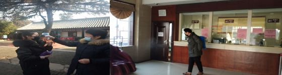 景區(qū)關閉期間,各部門實行輪流值班制度,公司領導每天對景區(qū)各部位進行安全巡視并檢查消殺工作,值班人員及時將消殺、防護情況分享至工作群內,確保交接班順暢。辦公區(qū)域每天都有工作人員,進行日常消殺。對進出景區(qū)的工作人員,做到每次出入必監(jiān)測體溫并做好出入情況記錄,及時消毒。