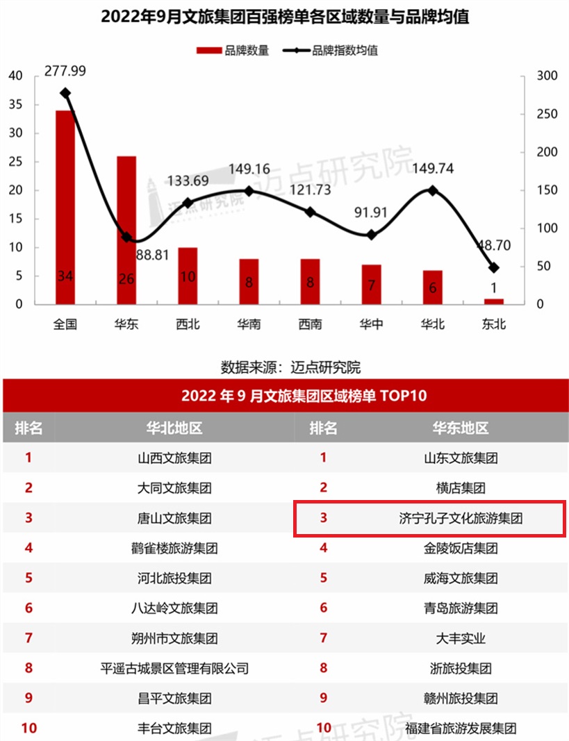 近日,權(quán)威文旅平臺(tái)邁點(diǎn)研究院發(fā)布“2022年9月文旅集團(tuán)100強(qiáng)榜單”,濟(jì)寧孔子文旅集團(tuán)持續(xù)穩(wěn)居該百強(qiáng)榜單,9月份位居全國第28位,孔子文旅集團(tuán)列全省第2位,僅次于山東省文旅集團(tuán),在全省位列地級(jí)市文旅集團(tuán)第1位,品牌影響力不斷攀升。