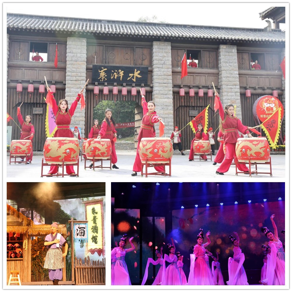 節(jié)日期間景區(qū)演藝節(jié)目豐富。上午九點(diǎn),在水滸寨門即梁山一關(guān)廣場上演大型演藝節(jié)目《好漢迎賓》。大型水滸舞臺(tái)劇《忠義梁山泊》在景區(qū)水滸劇場隆重上演,這也是大劇在定妝之后面向社會(huì)的首次公映。本劇由導(dǎo)演張忠安執(zhí)導(dǎo),香港著名導(dǎo)演劉嘉靖擔(dān)任藝術(shù)總監(jiān),經(jīng)過前期的科學(xué)籌劃以及中期的細(xì)致打磨,整臺(tái)劇目代表了魯西南地區(qū)文化演藝水平的較高水準(zhǔn),呈現(xiàn)出華麗的舞臺(tái)特效。高要求、高標(biāo)準(zhǔn)、高起點(diǎn)帶來的是較高的觀賞效果和較高的評(píng)價(jià),自大劇推出以來,受到廣大游客的一致好評(píng),稱其代表了水滸文化的較高演藝水平。來到梁山景區(qū),游覽美景的同時(shí),欣賞大劇感受水滸文化逐漸成為當(dāng)下主流的游覽方式。