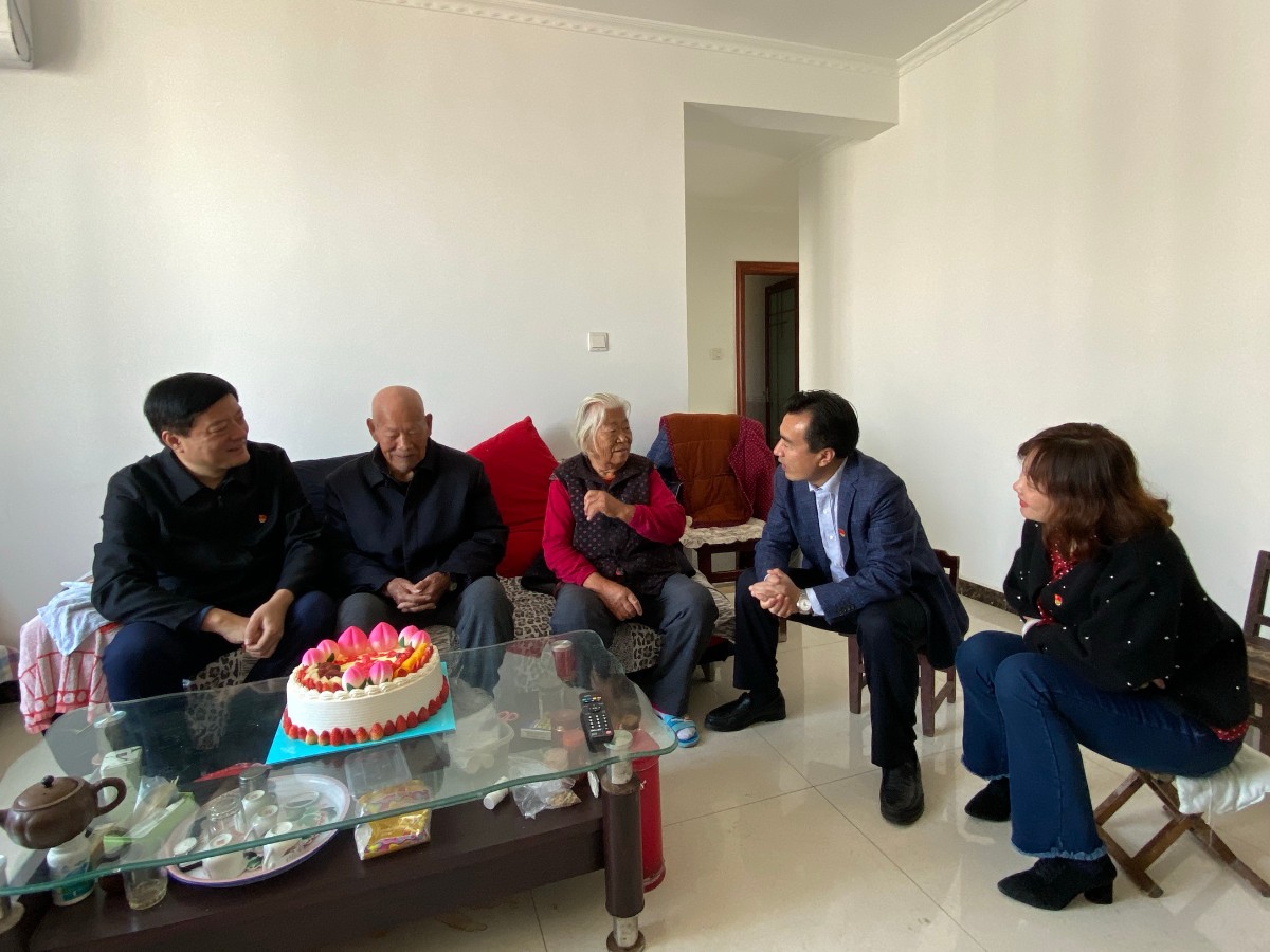 “民情書(shū)記”帶隊(duì)看望104歲老人孫廣榮,一進(jìn)門(mén),一句“我們來(lái)看您啦”透著濃濃的溫情。“老大娘,您身體可還好,我代表集團(tuán)祝您重陽(yáng)節(jié)節(jié)日快樂(lè),健康長(zhǎng)壽。”“民情書(shū)記”牽著老人的手,親切地問(wèn)候著。隨后,“民情書(shū)記”一行與孫廣榮的兒子——82歲高齡的顧士平親切攀談,事無(wú)巨細(xì)地詢問(wèn)了老人的身體狀況、生活起居等情況,并深入了解了孫廣榮一家的月收入、生活開(kāi)銷(xiāo)、社區(qū)服務(wù)等情況,隨后為老人送上了愛(ài)心蛋糕。顧士平激動(dòng)地表示“以前生活很困難,現(xiàn)在住上樓房,社區(qū)服務(wù)人員也經(jīng)常給老人量血壓,為老人的生活提供服務(wù),覺(jué)得生活很幸福”。“民情書(shū)記”拉著顧士平的手說(shuō):“有事找‘民情書(shū)記’,我們經(jīng)常來(lái)社區(qū),無(wú)論有什么困難,我們都會(huì)盡力給您解決好,您是尊老敬老的典型,我們要向您學(xué)習(xí)!”