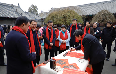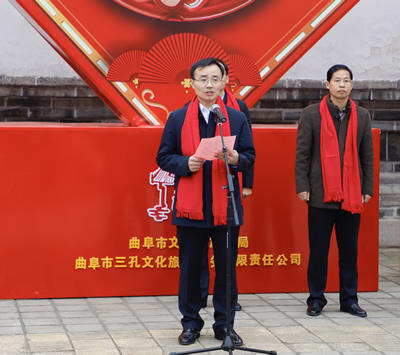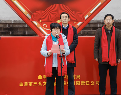 今天,我們?cè)谌拙皡^(qū)隆重舉行“孔府過大年”系列活動(dòng),讓游客一起體驗(yàn)孔府的年俗活動(dòng),利用傳統(tǒng)民俗活動(dòng)這個(gè)舞臺(tái),進(jìn)一步推進(jìn)“孔府過大年”活動(dòng)成長(zhǎng)為傳播孔子文化、惠及社會(huì)大眾的知名文化品牌,為中國(guó)傳統(tǒng)文化傳承做出新的更大貢獻(xiàn)!