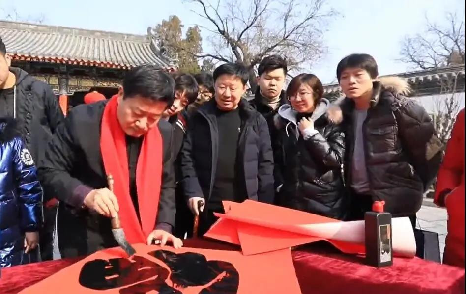 孔子后裔、孔子書畫院名譽(yù)院長孔祥勝在孔府寫福字