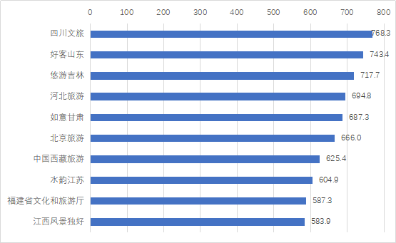 圖1 2020年省級(jí)文化和旅游抖音傳播力指數(shù)TOP10