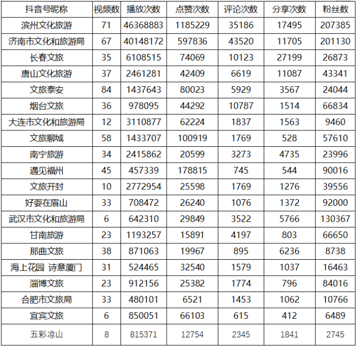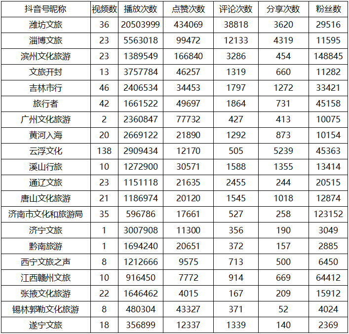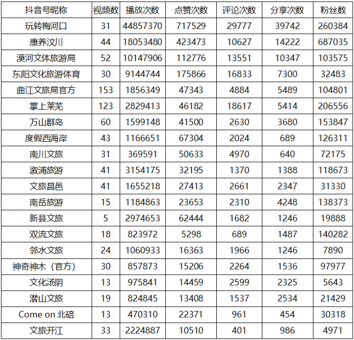 去年各級(jí)文化和旅游主管部門(mén)誰(shuí)“抖”得好?分析報(bào)告來(lái)看看