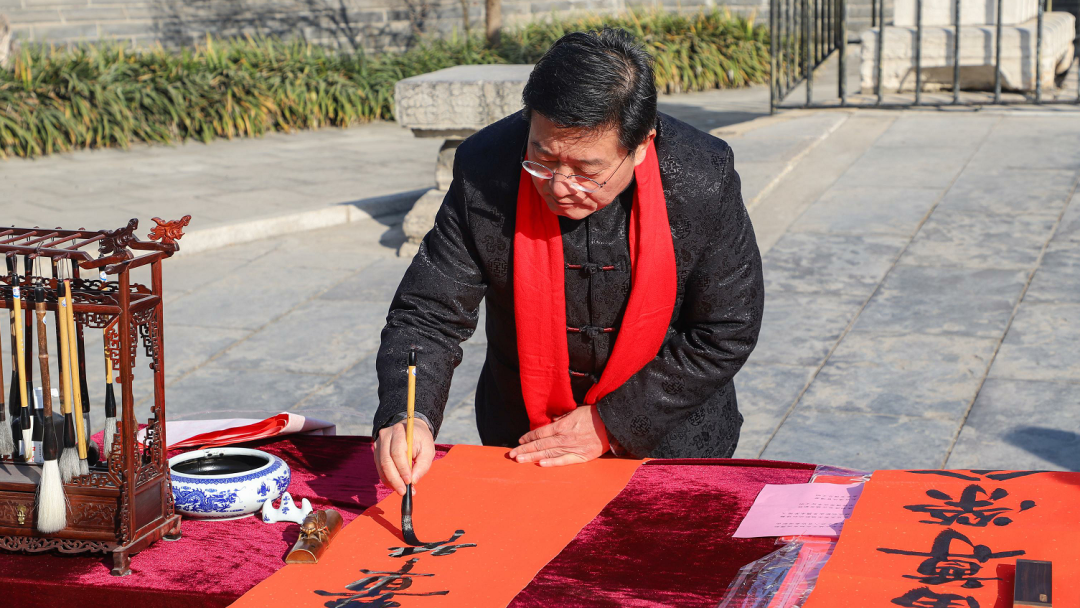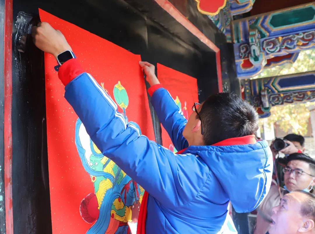 暖心分享后,孔令紹一家在重光門貼門神和對聯(lián),祖孫三代分工協(xié)作,其樂融融,簡單的家庭活動,和睦溫馨的氛圍,感染了每一位游客朋友們,家庭的傳承與延續(xù),最是年的味道。
