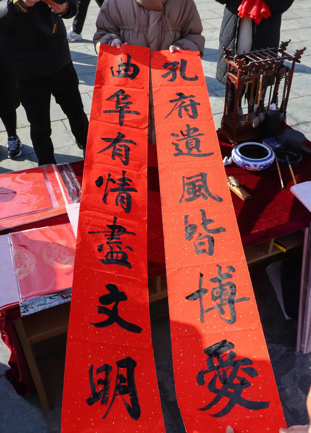 三孔景區(qū)“孔府過大年”系列活動給人感覺最深的就是年味非常濃,讓市民和游客通過看演出、聽家訓、做年畫、貼春聯(lián)活動,體會中華文化的一脈相承。每一項儀式背后,都有其歷史典故和民俗文化內(nèi)涵,不僅體現(xiàn)了北方漢民族鮮活的春節(jié)文化,也滲透出濃濃的儒家文化氣息和曲阜地方特色。