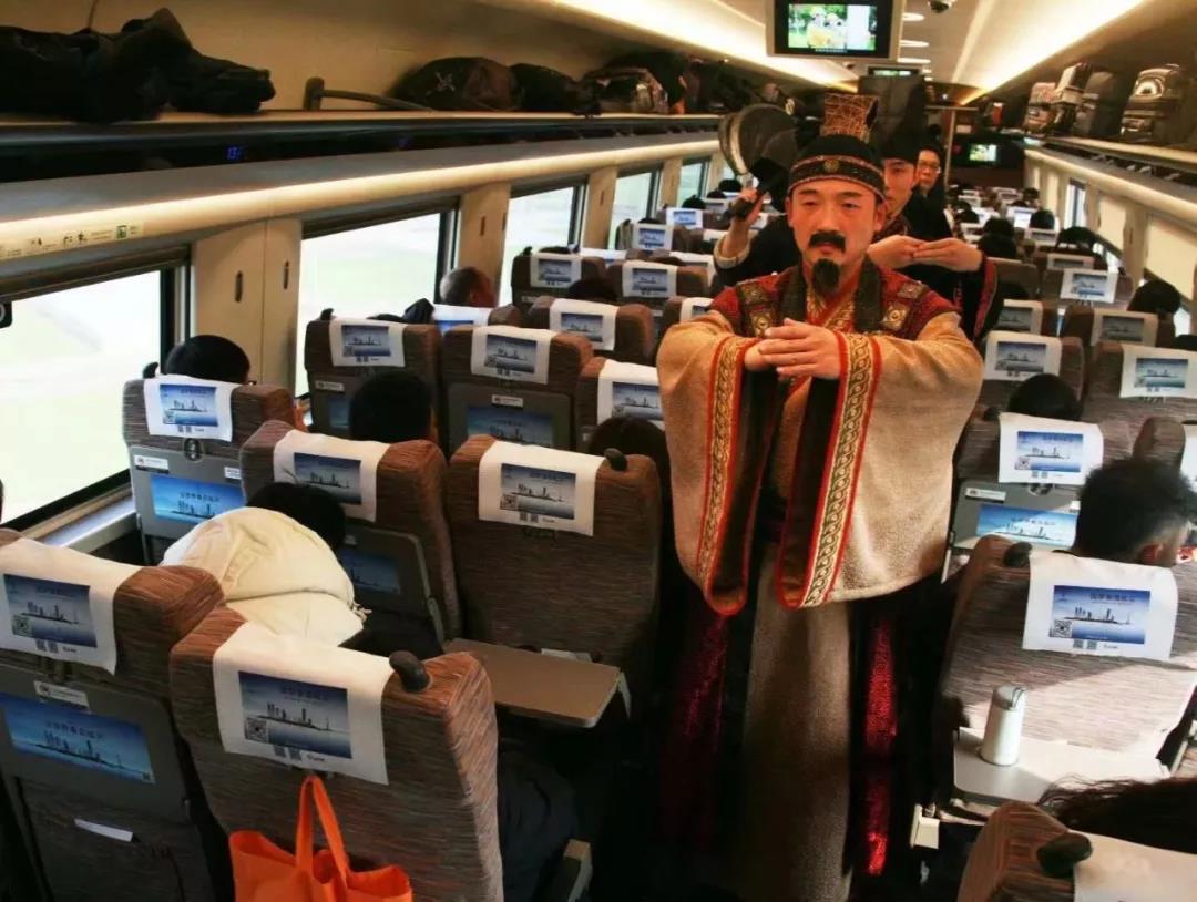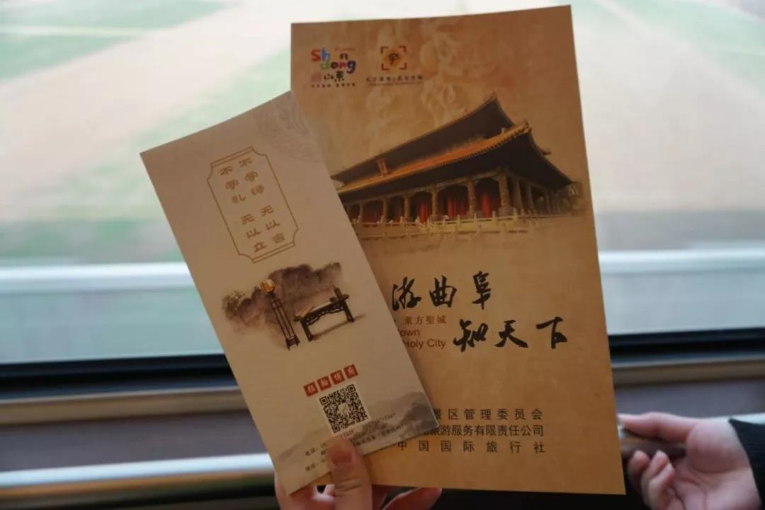 隨后,濟(jì)寧孔子文化旅游集團(tuán)營銷人員以及景區(qū)工作人員登上了高鐵環(huán)游齊魯,開啟了“孔孟之鄉(xiāng)過大年”高鐵營銷推廣活動。先后乘高鐵歷經(jīng)了濟(jì)南、青島、濰坊、日照、臨沂、泰安、曲阜多站,為高鐵旅客帶來了冬游濟(jì)寧過大年產(chǎn)品及多項優(yōu)惠政策。高鐵上,旅客們品嘗特色美食,觀賞文化展演,體驗(yàn)了一把濃濃的地道濟(jì)寧年味。高鐵座位上的頭片火了,旅客們紛紛拿起手機(jī),掃描二維碼,第一時間體驗(yàn)智游濟(jì)寧的樂趣。