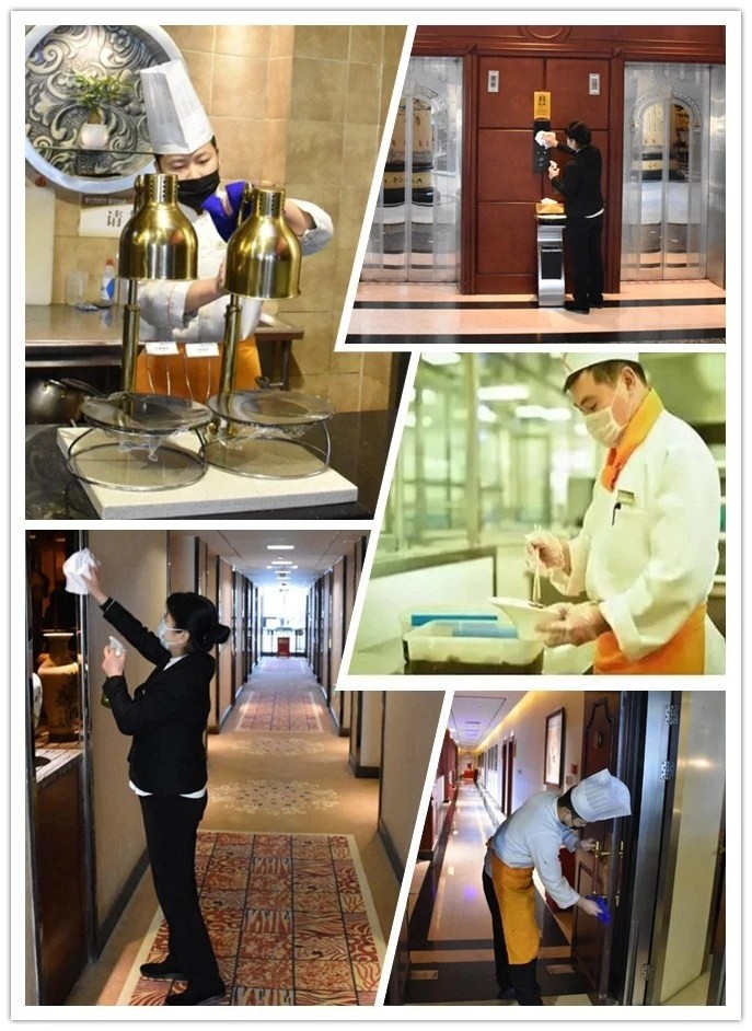 餐飲部設(shè)計(jì)菜單時(shí)避開海鮮等生鮮菜品,廚房制作菜肴確保蒸熟煮熟;包間進(jìn)行開窗通風(fēng),餐具嚴(yán)格按照消毒程序進(jìn)行消毒;廚師操作過程中佩戴一次性手套及口罩。