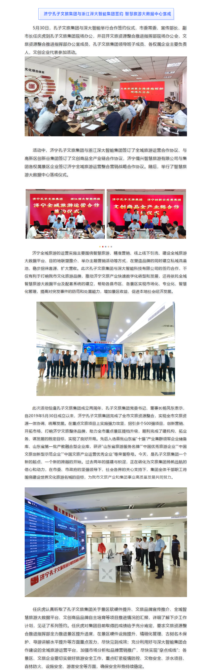 濟(jì)寧孔子文旅集團(tuán)與浙江深大智能簽約 智慧旅游大數(shù)據(jù)中心落成