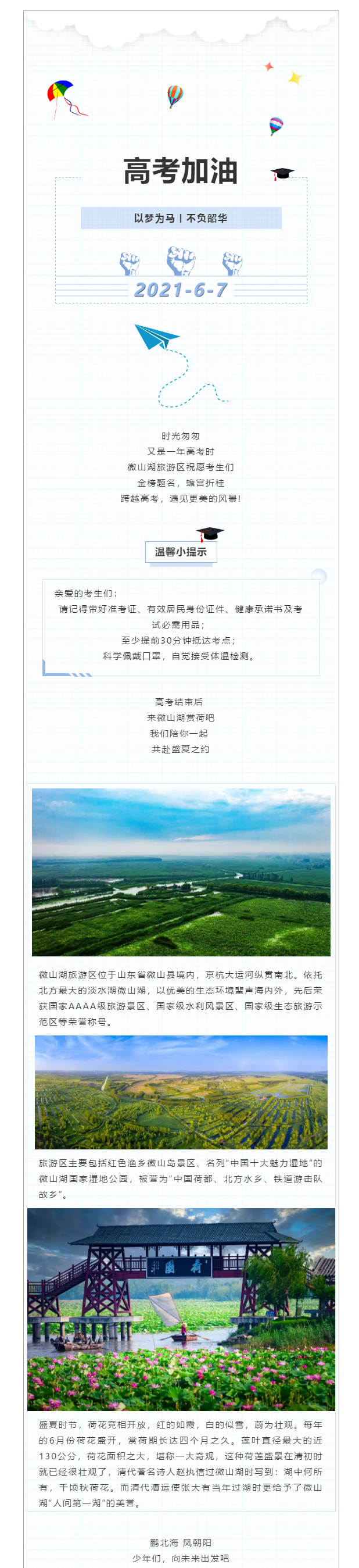 高考加油 | 微山湖旅游區(qū)祝愿莘莘學(xué)子金榜題名!