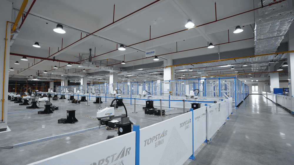與此同時,拓斯達機器人產(chǎn)線在總部基地已經(jīng)順利投入運行,產(chǎn)量穩(wěn)定。目前,機器人整個生產(chǎn)流程,包括來料檢測、生產(chǎn)組裝、測試老化、倉儲物流,均在總部基地內(nèi)完成。