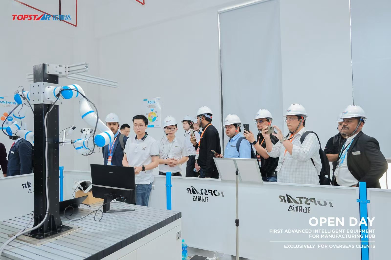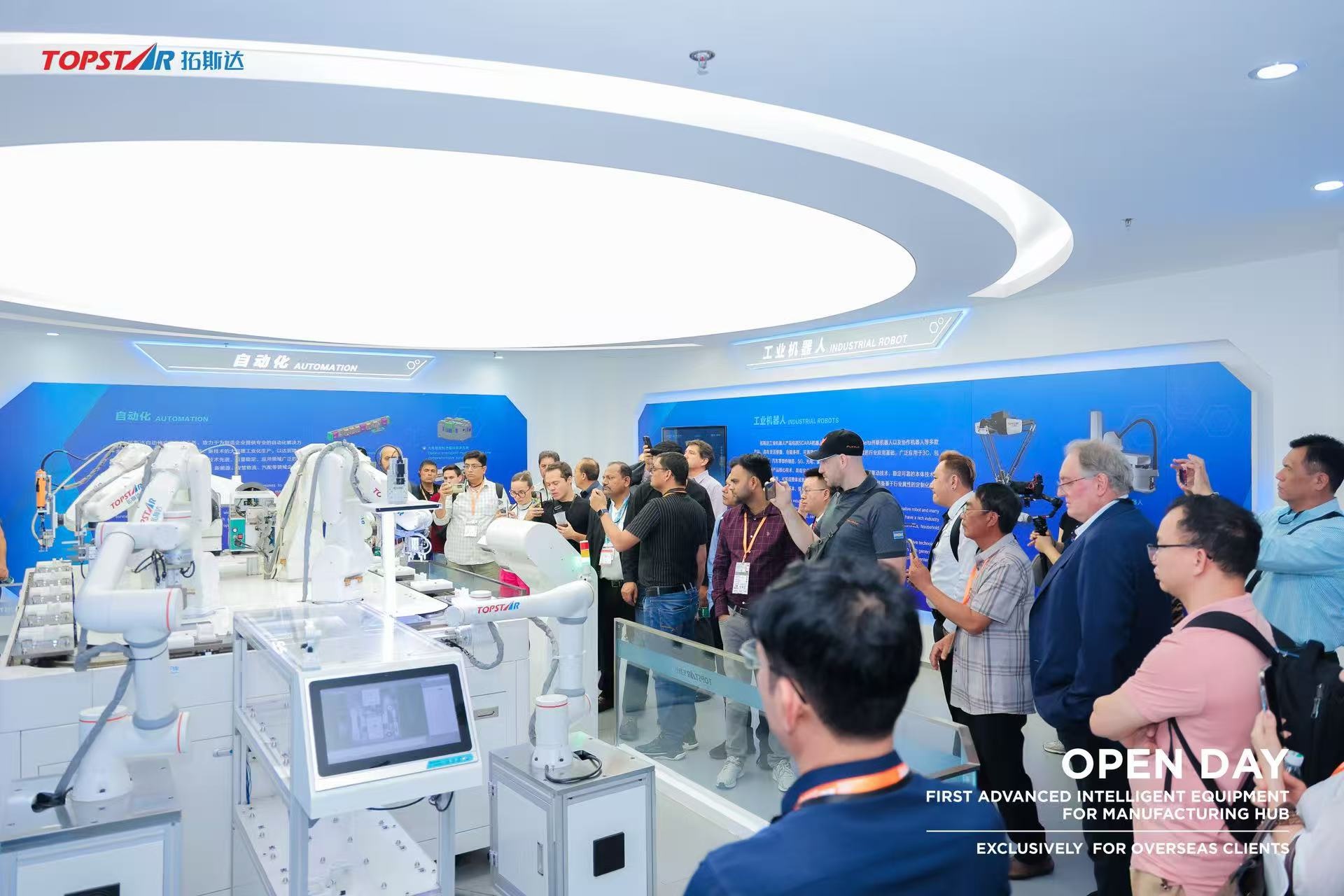 同期,拓斯達(dá)智能設(shè)備總部基地首次對(duì)外開(kāi)放,吸引十余國(guó)五十余位客戶代表。拓斯達(dá)重點(diǎn)展示工業(yè)機(jī)器人、數(shù)控機(jī)床、注塑機(jī)等具有代表性的戰(zhàn)略機(jī)型。
