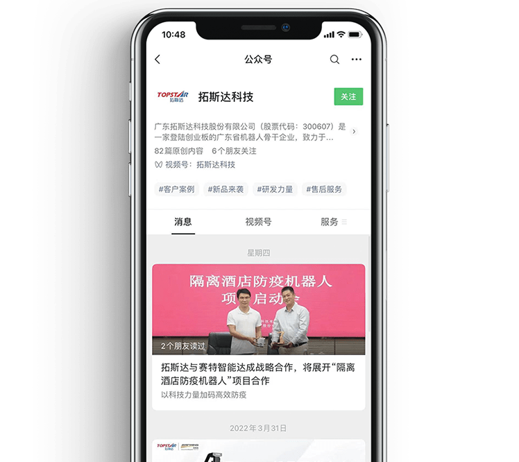 01 第一步關(guān)注拓斯達(dá)公眾號,可置頂